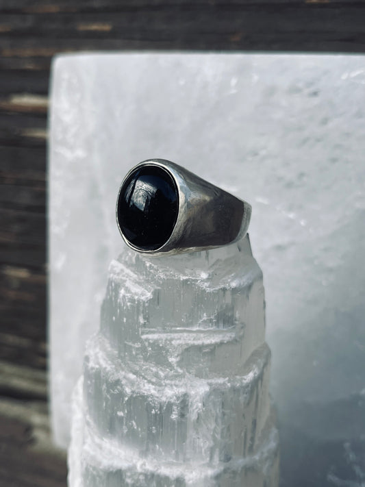 Black Onyx Ring. Size 10. 925 Sterling Silver- Handmade