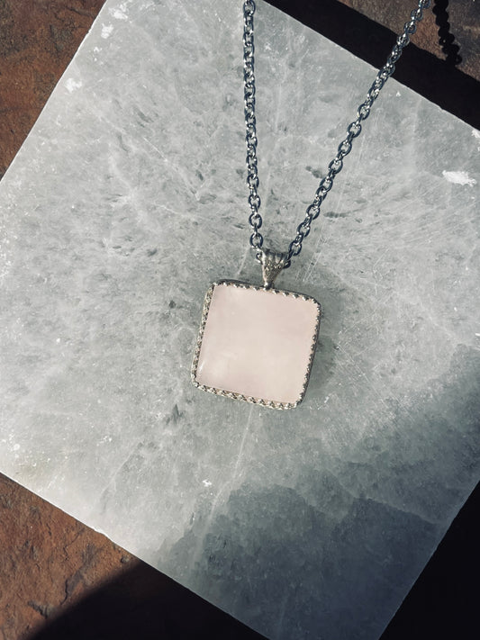 Rose Quartz “Fuck You” Pendant- 925 Sterling Silver/Handmade