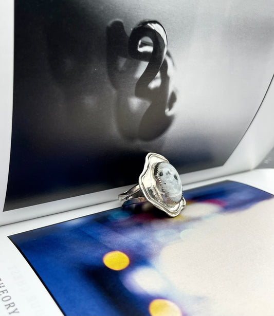 Rainbow Moonstone Ring. Size 10. 925 Sterling Silver.- Handmade