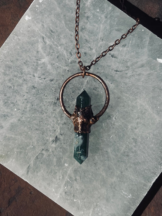 Moss Agate Electroformed Pendant- Handmade/Made to Order